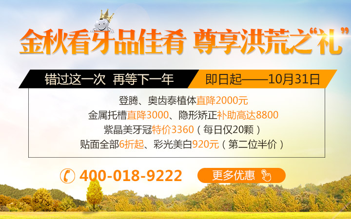 为增强市民口腔健康观念和口腔保健意识,更好地回报广大沈城人民,康贝佳口腔十月推出“金秋看牙品佳肴 尊享洪荒之“礼”优惠活动。>>>点击查看优惠详情>>>