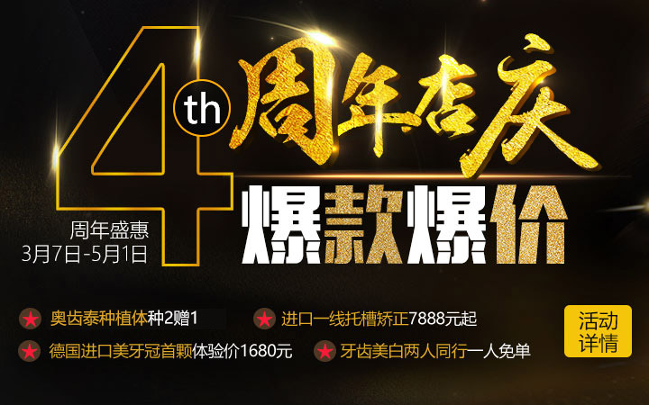 【种植礼】: 1、年龄抵钱花,减免年龄乘10的数字;2、奥齿泰种植体种二赠一;