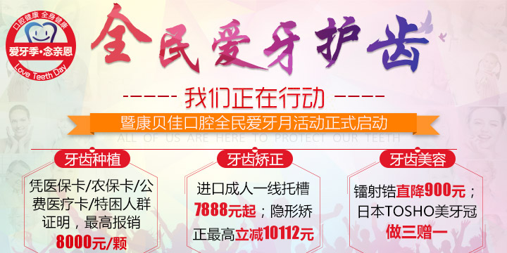 发布日期:2018-04-13 来源:沈阳康贝佳口腔今年的爱牙日主题为“口腔健康,全身健康”。世界卫生组织将口腔健康列为人体健康的十大标准之一,口腔健康与全身健康密切相关,维护口腔健康是防控全身性疾病的重要手段。康贝佳口腔特在全国爱牙日来临之际,开展“全民爱牙护齿,我们正在行动”主题活动,9月院内所有口腔项目均有优惠,网络预约到院还可享受免费口腔检查。》》》活动咨询热线:024-31657653