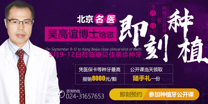 发布日期:2018-04-13 来源:沈阳康贝佳口腔9月10日,由沈阳康贝佳口腔举办的“种植牙公开课”活动即将开启,对于想要做种植牙的市民,不妨先听听医生主讲的公开课再做种植牙!本次公开课的主讲人是来自北京种植医生的吴高谊博士,吴博士来到沈阳还将带来为期三天(9月9-12日)的亲诊活动。