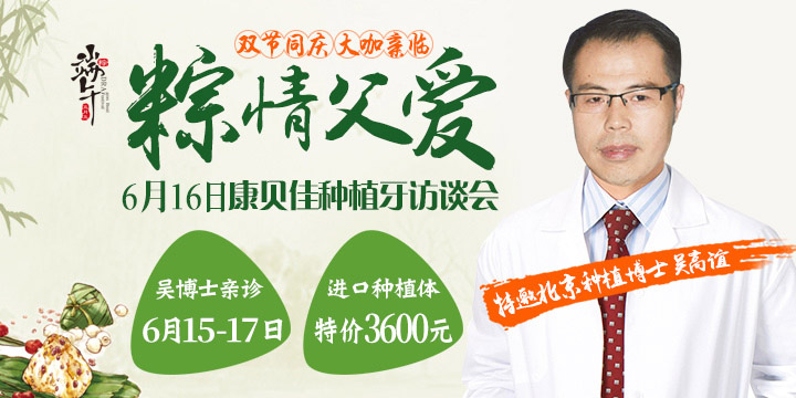 因为缺牙引发口臭,他们不敢跟人说话了,身体也差了。现在他们可能因为缺牙连粽子都吃不了。其实他们缺的正是一口好牙,带上爸爸一起去看牙吧,康贝佳口腔已经为你们准备了大礼,还邀请了北京种植博士吴高谊开展种植牙访谈会>>>查看康贝佳父亲节活动
