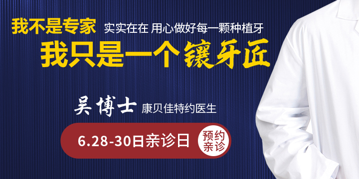 发布日期:2019-06-24 来源:沈阳康贝佳口腔牙齿缺失给老人的生活带来诸多不便,更会影响身体健康。对于缺牙老人而言,大的愿望莫过于一口好牙,让他们吃饭更香、身体硬朗。缺牙该怎么办?哪种修复方式可以一劳永逸?为帮助缺牙市民找回健康,康贝佳特邀口腔种植专家解读有关缺失牙修复问题,为市民免费提供口腔保健指导,长期缺牙、疑难牙缺失、多颗牙齿缺失、假牙佩戴不适等患者均可报名。6月28-30日,北京吴博士将会在我院开展为期三天的亲诊活动。望广大市民朋友互相通告,不要错过此次专家亲诊机会!<<<我要预约专家亲诊