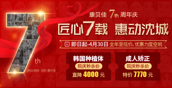 发布日期:2020-03-31 来源:沈阳康贝佳口腔弹指一挥间,沈阳康贝佳口腔已走过整整7年,7年品质,口福同行,自2013年建院以来,在种植、矫正、美齿、治疗等各个领域,以专业、科技、规范、舒适的高品质诊疗服务,赢得了沈城百姓的广泛认可。