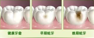 浅龋:牙齿表面发黑有孔,但尚未蛀坏到牙神经,牙齿无疼痛感。